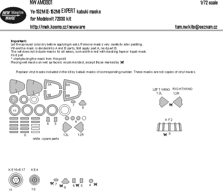 NEW WARE - 1/72 Mask Ye-152M (E-152M) EXPERT (MSVIT 72030)