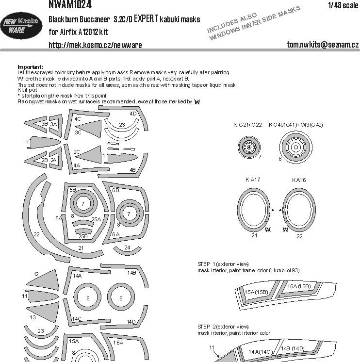 New Ware - 1/48 Blackburn Buccaneer S.2C/D Expert Set (for Airfix kits) aircraft canopy including window frames and inner sideb masks, other clear parts, wheels, air intakes, camouflage details