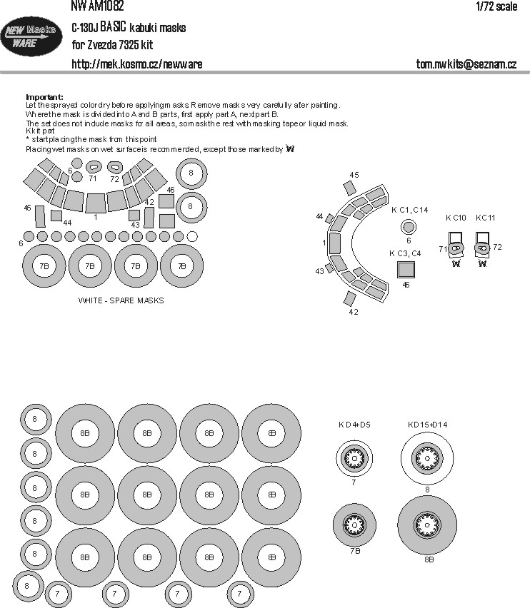 New Ware - 1/72 Lockheed C-130J Hercules Basic kabuki masks all windows, wheels (for Zvezda kits)