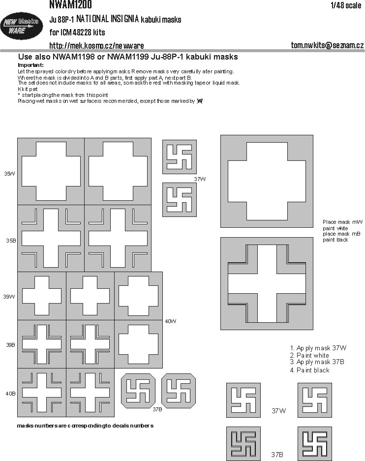 NEW WARE - 1/48 Mask Ju 88P-1 National Insignia for ICM 48228