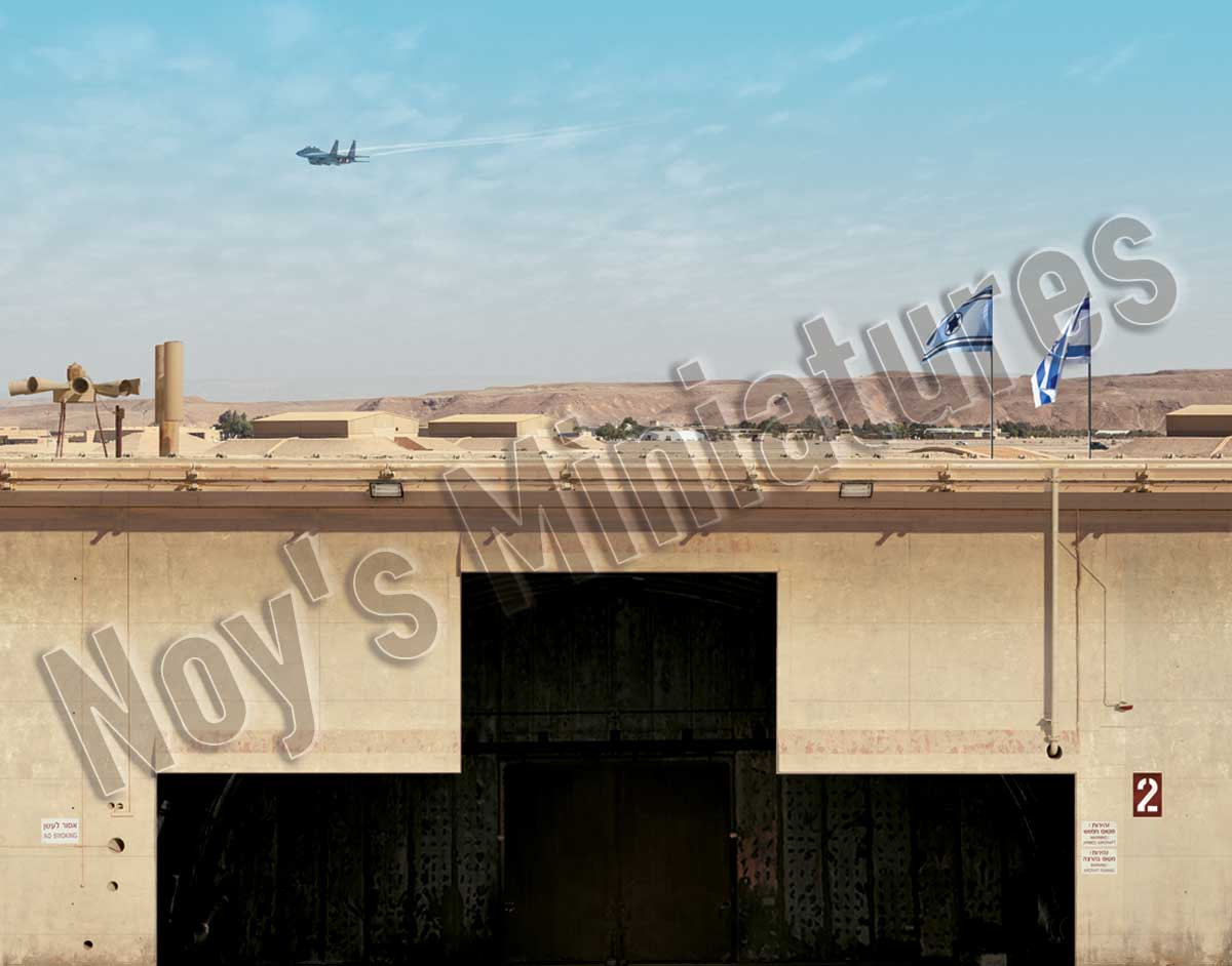 The set includes 2 prints (base + backdrop) and depicts the front area of an Israeli Air Force Has (Hardened Aircraft Shelter).