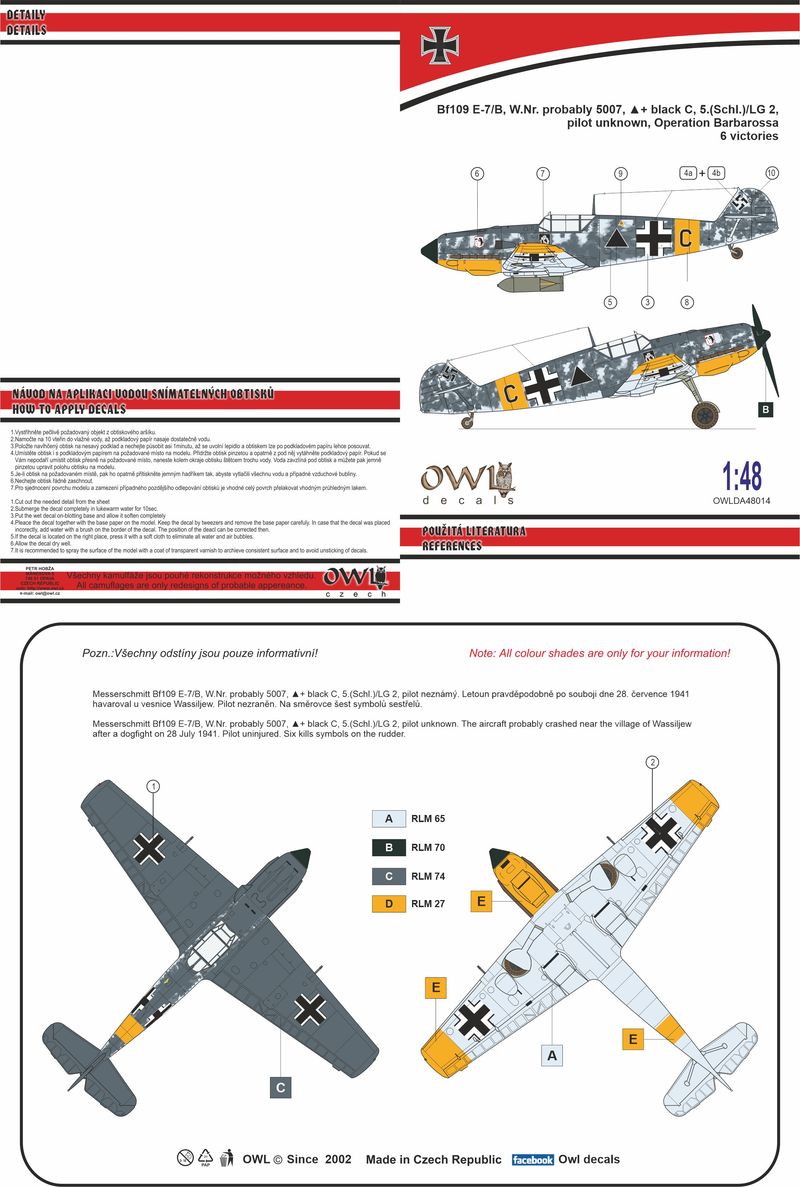 OWL Decals - 1/48 Messerschmitt Bf-109E-7/Jabo Black C, 5.(Schlacht)/LG 2