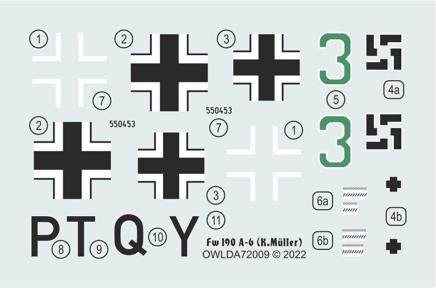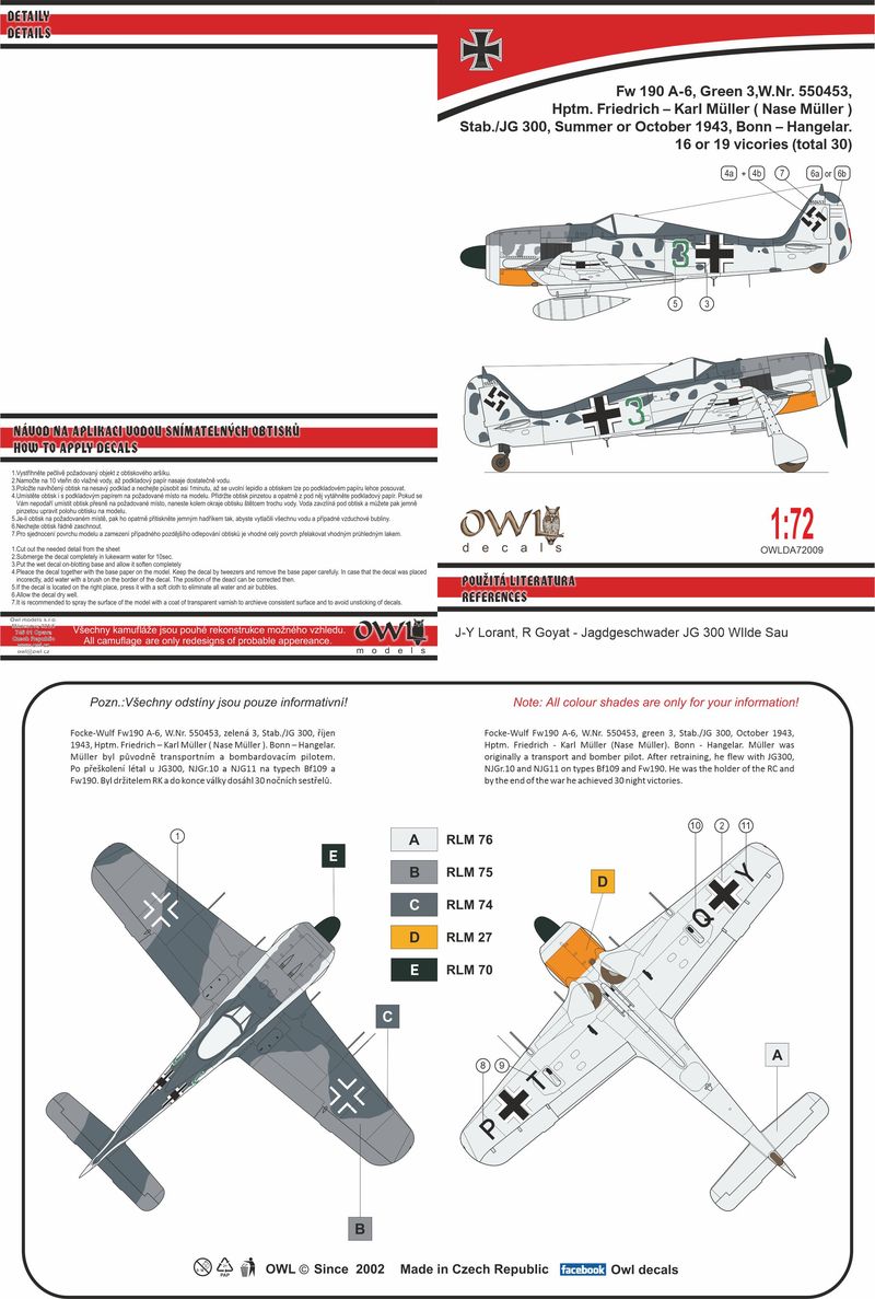OWL Decals - 1/72 Focke-Wulf Fw-190A-6 (F.K. Muller) II/JG 300, Green 3