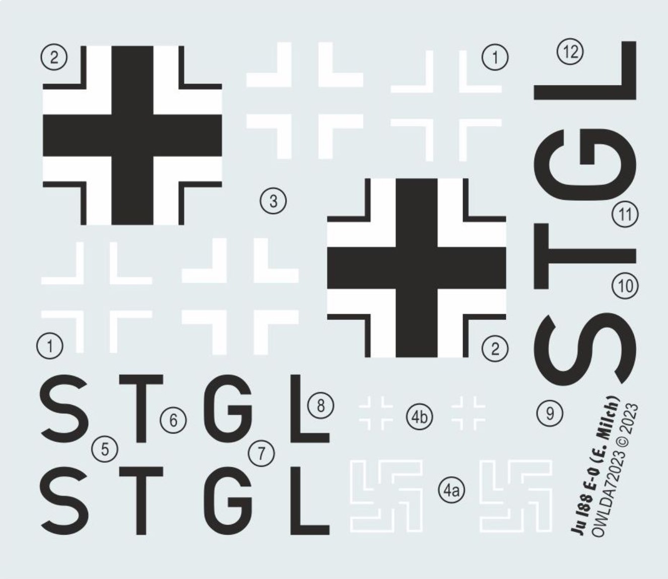 OWL Decals - 1/72 Junkers Ju-188 E-0 (E. Milch) personal aircraft ST+GL