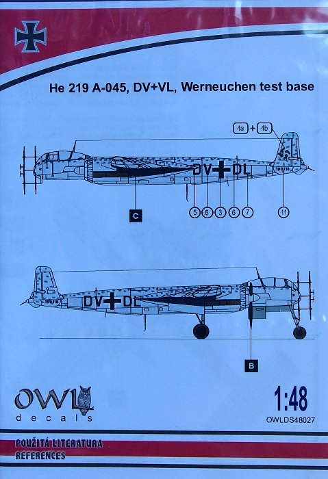 OWL DECALS - 1/48 He 219 A-045, DV+VL, Werneuchen test base