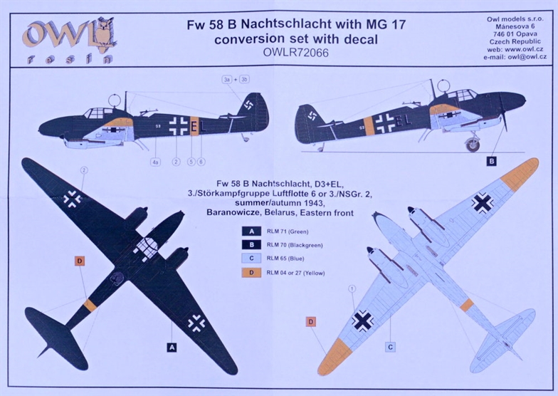 OWL DECALS - 1/72 Fw 58 B WN with MG 17 Conversion set & decal