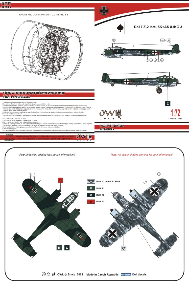 OWL Decals - 1/72 Dornier Do 17Z-2 5K+AS KG 3