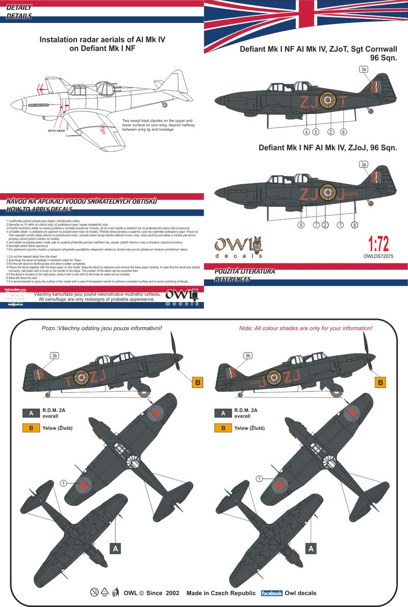 OWL Decals - 1/72 Boulton-Paul Defiant Mk.I Nightfighter Part 4 (with AI Mk.IV) ZJoJ or ZJoT (Cornwall) with AI Mk.IV