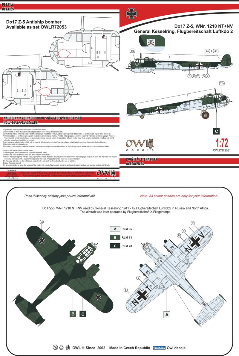 OWL Decals - 1/72 Dornier Do-17Z-5 Luftflotte 2 (General Kesselring) NT+NV