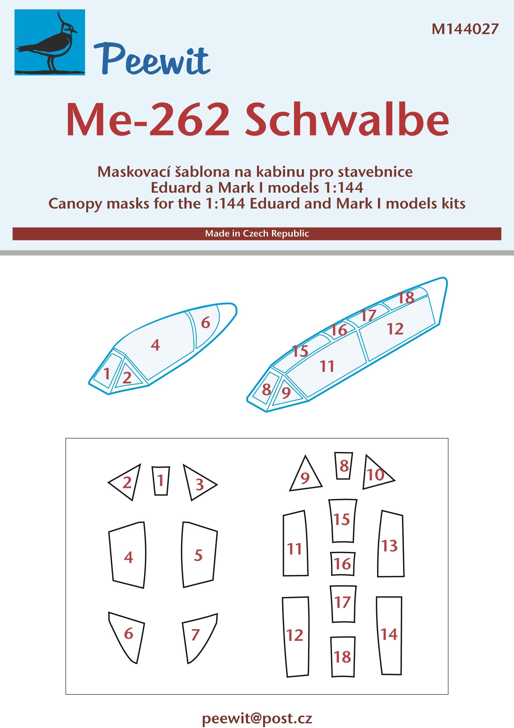 PEEWIT - 1/144 Canopy mask Me-262 Schwalbe (EDU/MARK1)