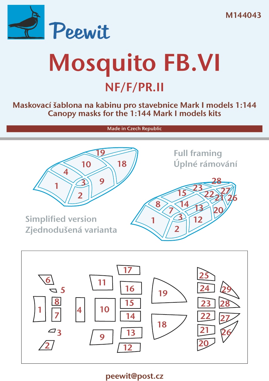 PEEWIT - 1/144 Canopy mask Mosquito FB.VI (MARK 1 MOD.)