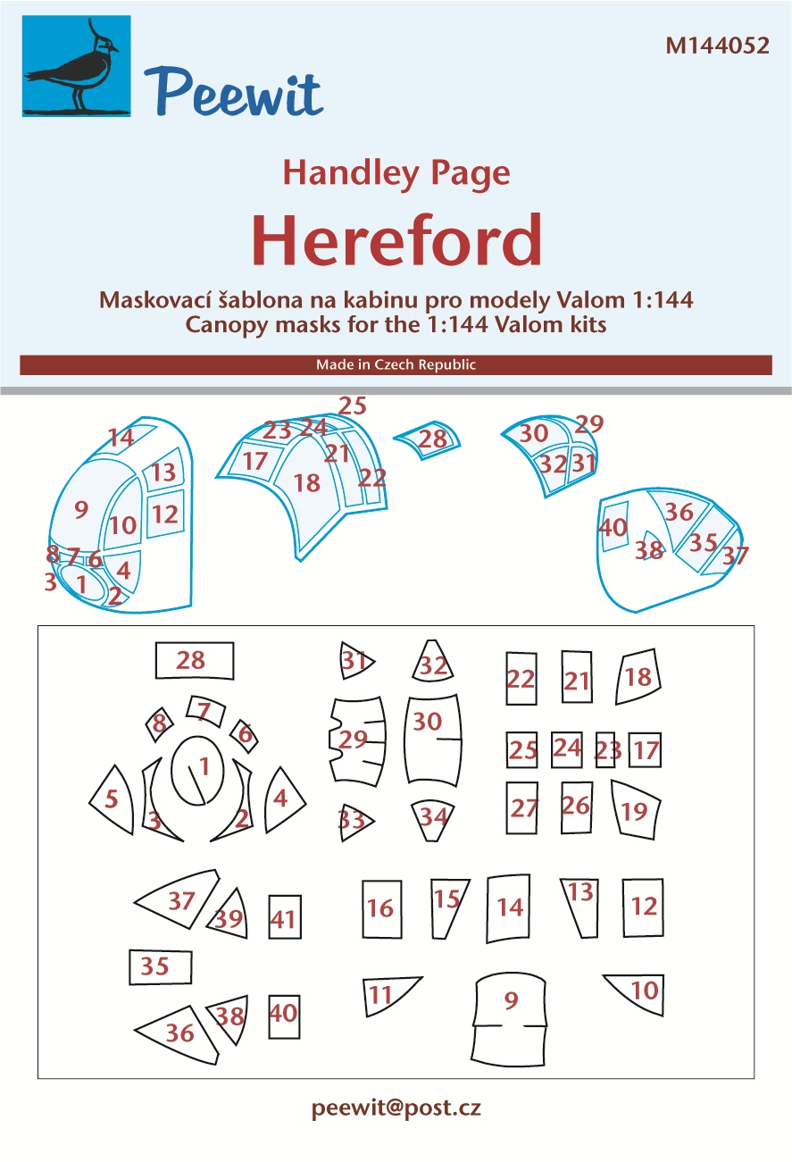 PEEWIT - 1/144 Canopy mask Handley Page Hereford for Valom