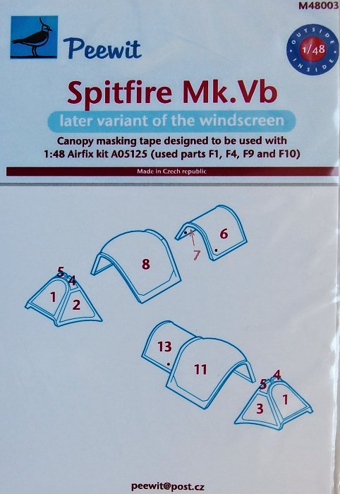 Peewit - 1/48 Supermarine Spitfire Mk.VB New Tooling for the later variant of the windscreen (used parts of the Airfix kit F1, F4, F9 and F10) (designed to be used with Airfix kits)