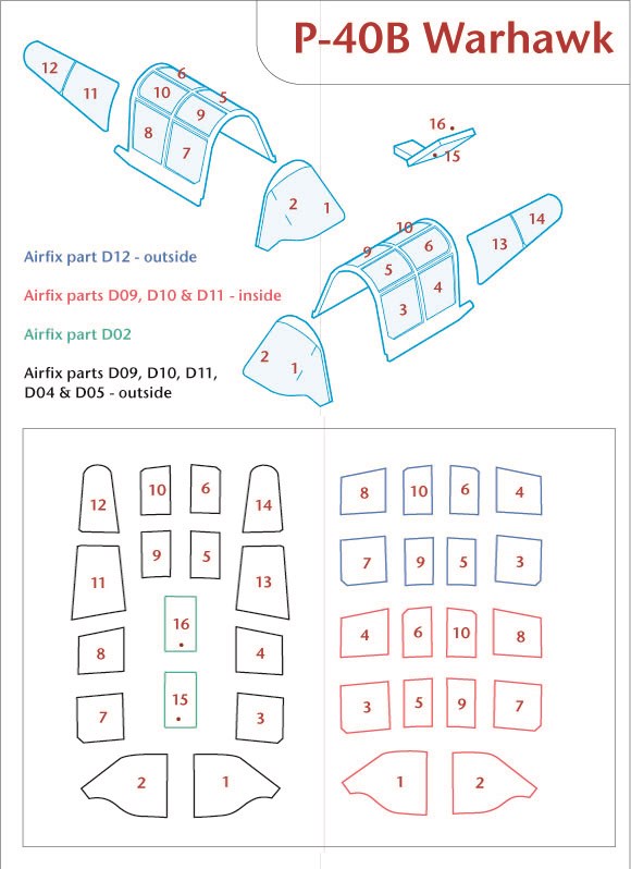 Peewit - 1/48 Curtiss P-40B Tomahawk (for Airfix kits) - designed for the inside and outside surfaces of the canopy