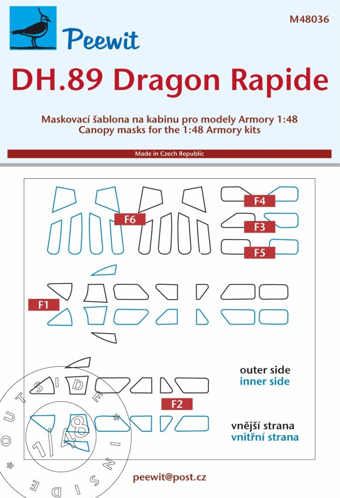 PEEWIT - 1/48 Canopy mask DH.89 Dragon Rapide ARMORY
