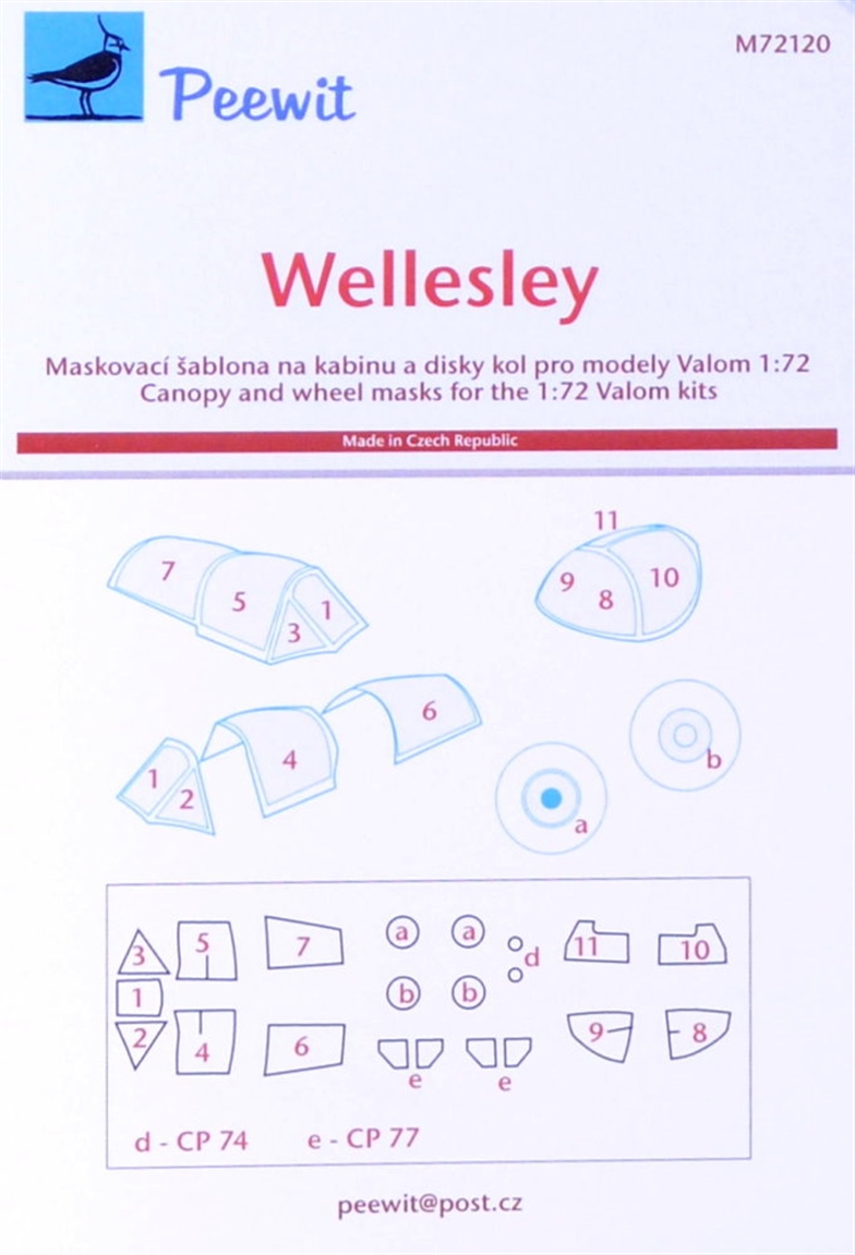 PEEWIT - 1/72 Canopy mask Wellesley (VALOM)