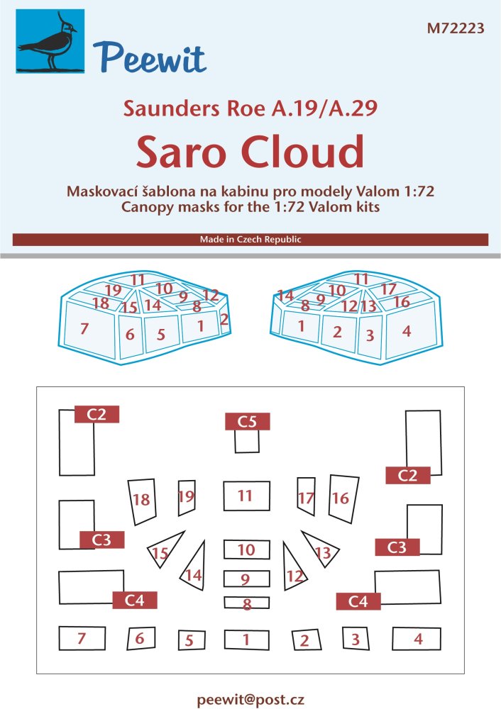 PEEWIT - 1/72 Canopy mask Saunders Roe A.19/A.29 (VALOM)