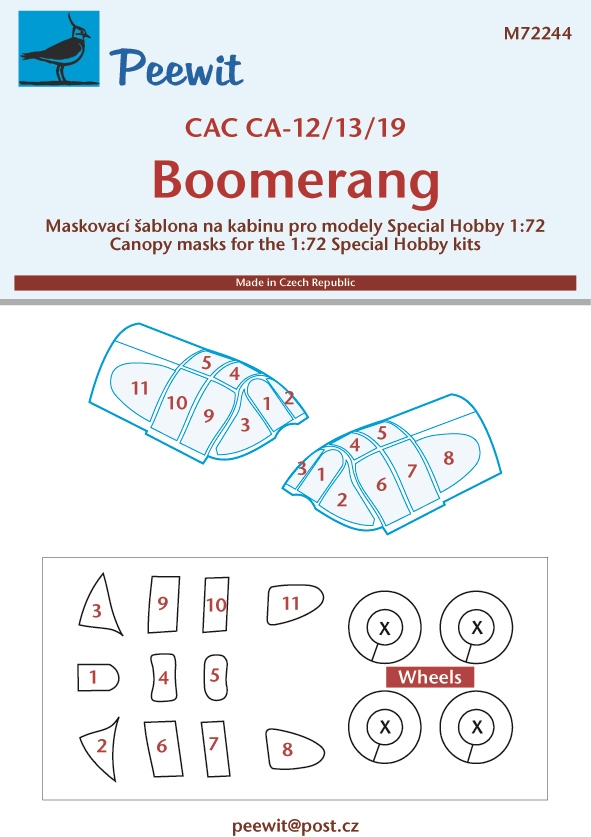 PEEWIT - 1/72 Canopy mask CAC CA-19 Boomerang (SP.HOBBY)