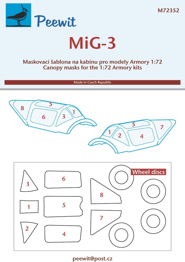 PEEWIT - 1/72 Canopy mask MiG-3 for ARMORY