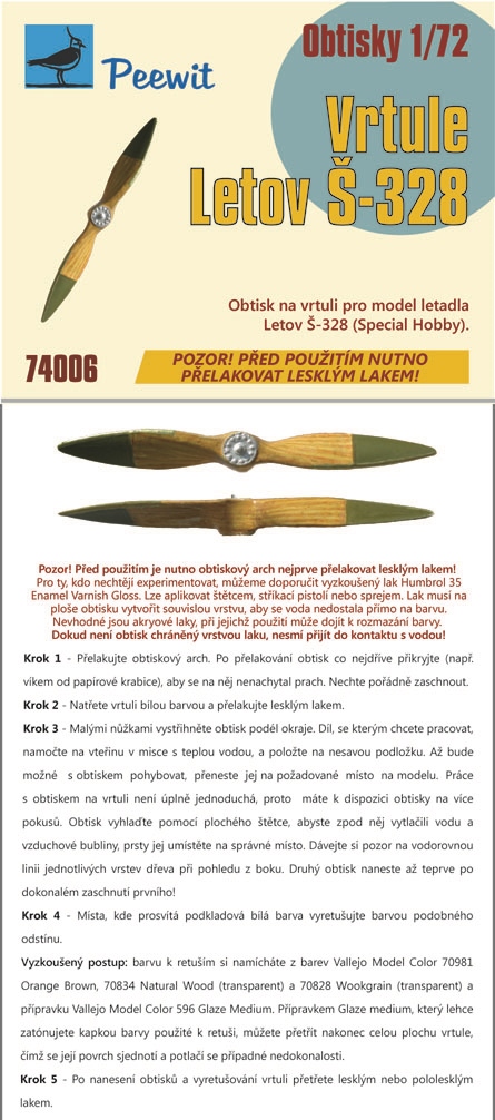 Peewit - 1/72 Letov S-328 (Propeller)-(for Special Hobby kits) (this decal must be varnished before it is used)