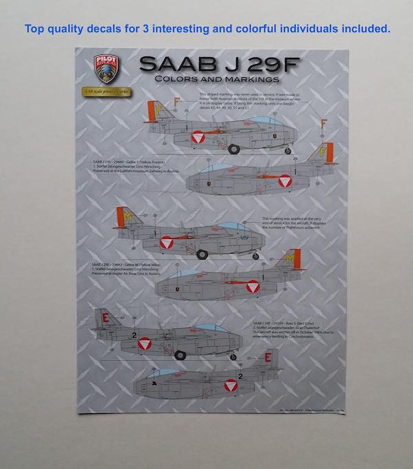 Pilot Replicas - 1/48 SAAB J-29F 'Tunnan' Austrian, injection molded plastic kit incl PE parts & Cartograf decals