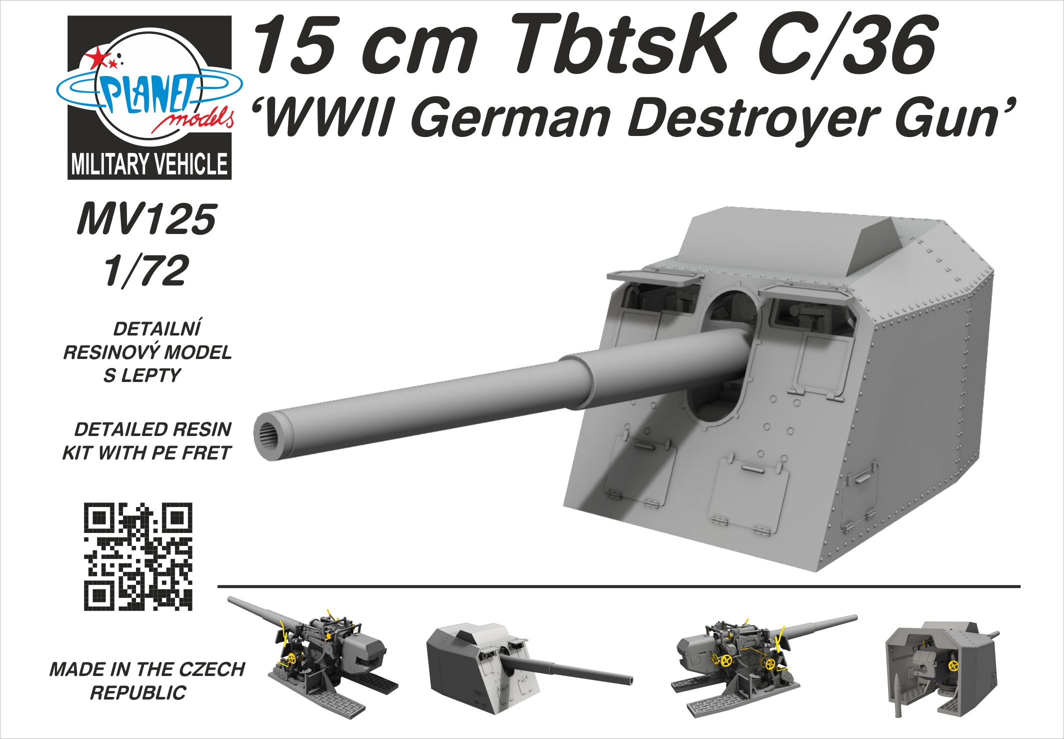 Planet - 1/72 15cm TbtsK C/36 'WWII German Destroyer Gun' German naval gun in a standard style gun turret was originally developed as main armament of German destroyers and secondary armament of heavier vessels including the planned battle ships of the Kriegsmarine. Finely detailed resin cast parts come with a fret of etches.