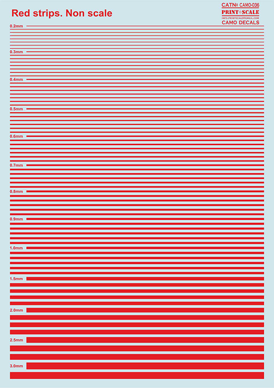 1/144, 1/200, 1/24, 1/32, 1/35, 1/48, 1/72 Red stripes