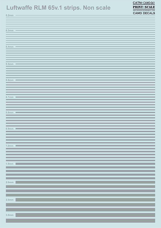 Print Scale - 1/144, 1/200, 1/24, 1/32, 1/35, 1/48, 1/72 Luftwaffe RLM 65v.1 stripes