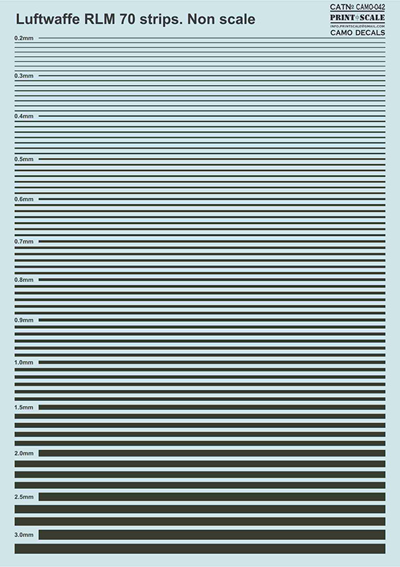 Print Scale - 1/144, 1/200, 1/24, 1/32, 1/35, 1/48, 1/72 Luftwaffe RLM 70 stripes