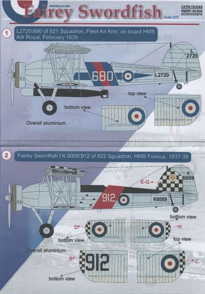 PRINT Scale - 1/72 Fairey Swordfish (2 sheets, wet decals)
