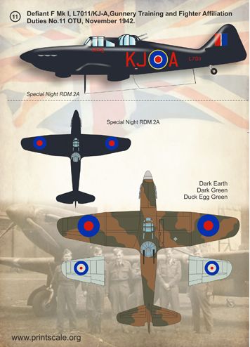 11. Defiant F Mk.I, L7011/KJ-A,Gunnery Training and Fighter Affiliation Duties No.11 OTU, November 1942.