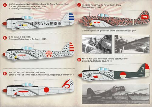 4. Ki-43-II.Manchukuo National Military Force Air Corps, Summer 1944.The hieroglyphs on the fuselage are name of company which bought this aircraft.