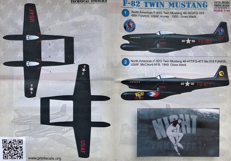 PRINT Scale - 1/48 F-82 Twin Mustang (wet decals)