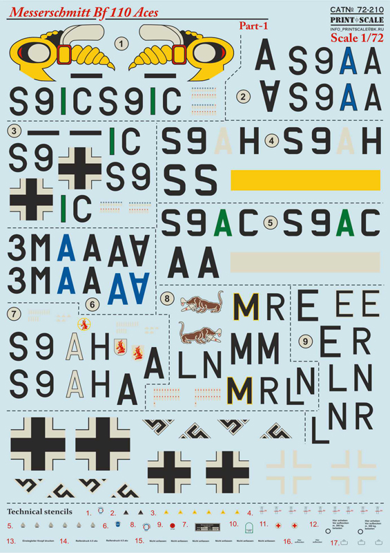 PRINT Scale - 1/72 Messerschmitt Bf 110 Aces (wet decals)