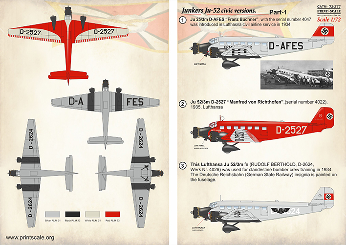 Print Scale - 1/72 Junkers Ju-52 civic versions Part-1