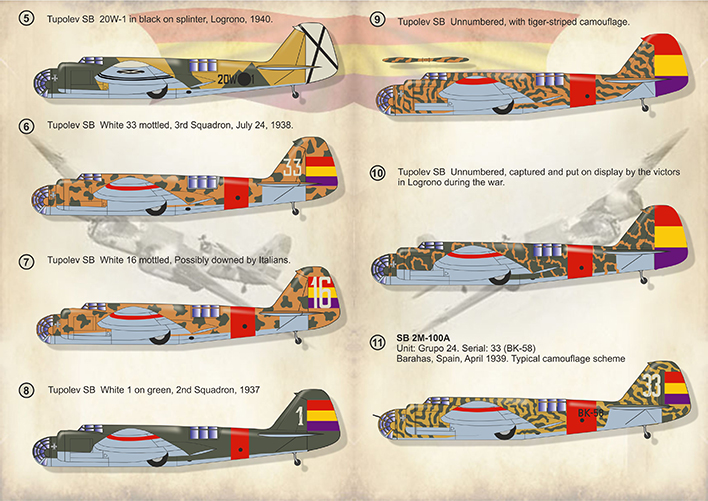 11. SB-2M-100A Unit: Grupo 24. Serial: 33 (BK-58) Barahas, Spain, April 1939. Typical camouflage scheme