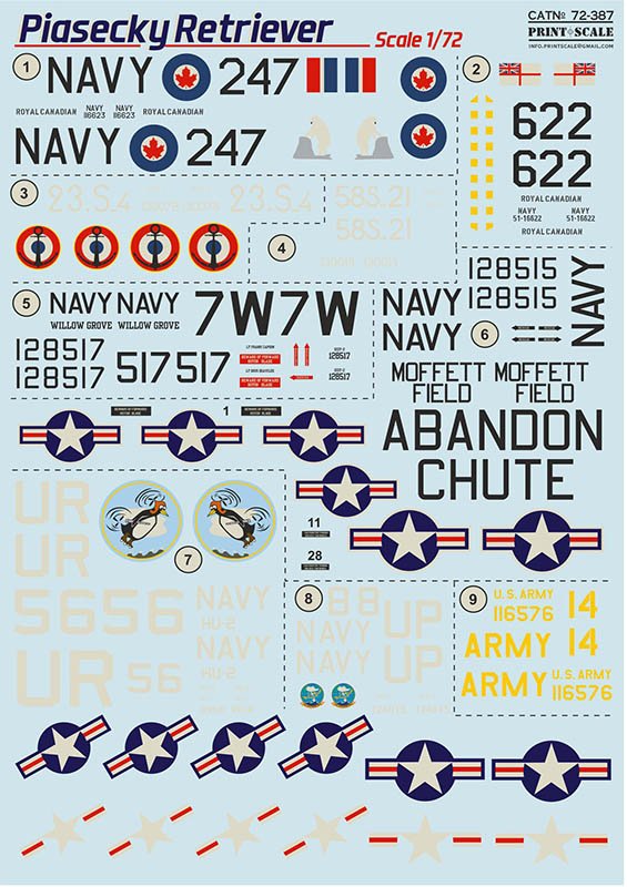 9. UH-25 Army Mule, 116585, 14, Usa 1968.The complete set 1,5 sheets