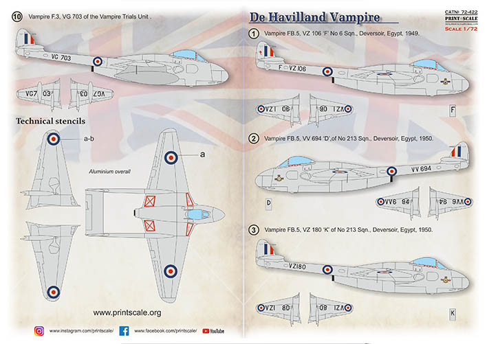 Print Scale - 1/72 De Havilland FB Vampire