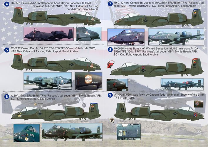 6. Fairchild A-10A 355th TFS/354th Tfw Falcons, tail code Mb Myrtle Beach AFB, Sc King Fahd Airport, Saudi Arabia.
