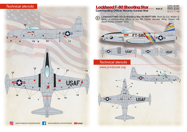 1. Lockheed F-80C-10-LO Shooting Star 49-580/FT-580, flown by Col. Walter G. Benz, Jr.,commanding officer of the 8th Fighter Bomber Wing, Suwon AB, South Korea, October 1952.