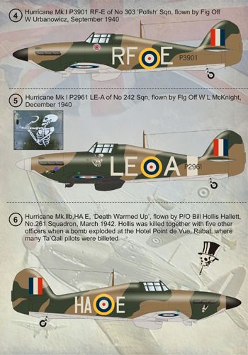 6. Hurricane Mk.llb,HA E, 'Death Warmed Up', flown by P/O Bill Hollis Hallett, No.261 Squadron, March 1942. Hollis was killed together with five other officers when a bomb exploded at the Hotel Point de Vue, Rabat, where many Ta'Qali pilots were billeted