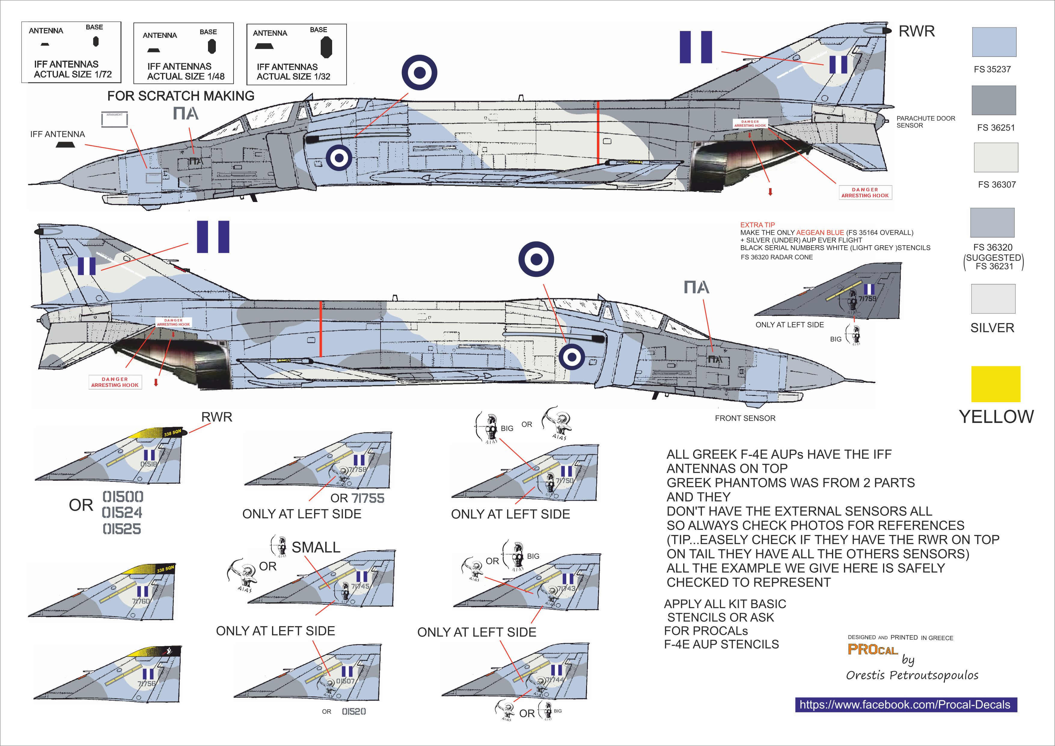 Procal Decals - 1/48 McDonnell F-4E Phantom II Aup Roundels Numbers And Sq Special Markings final is an set for who want to make a Greek Non Anniversary Aup F-4E just with squadrons tail special markings. Over 10 options more As Now FLIGHT.
