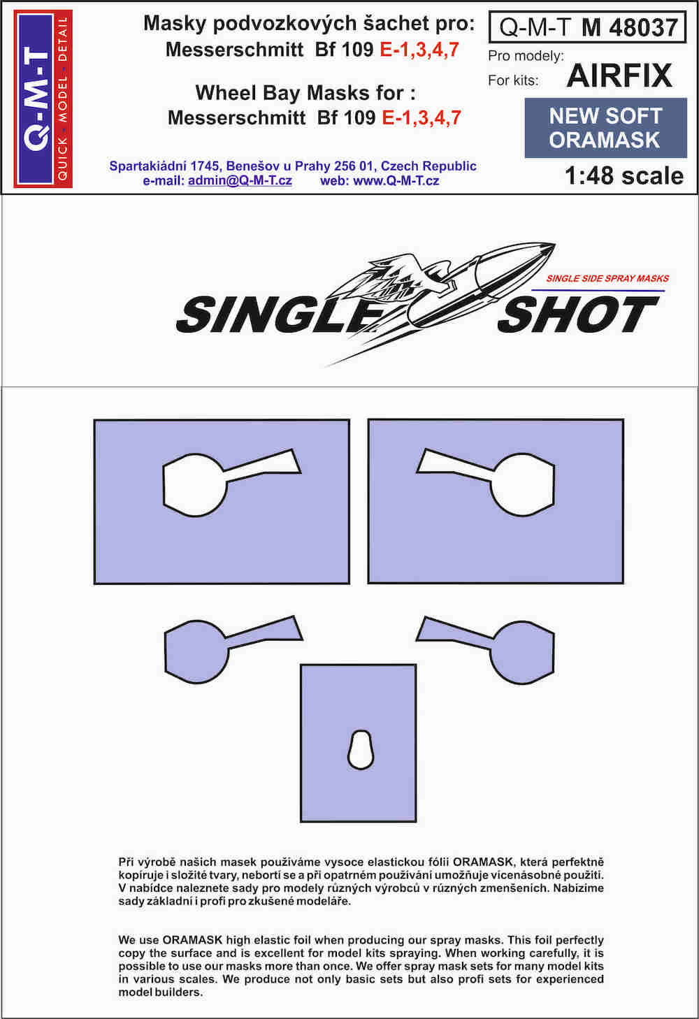 Q-M-T - 1/48 Messerschmitt Bf-109E-1/Bf-109E-3/Bf-109E-4/Bf-109E-7 wheel bay paint masks (for Airfix kits) made from New Soft Oramask