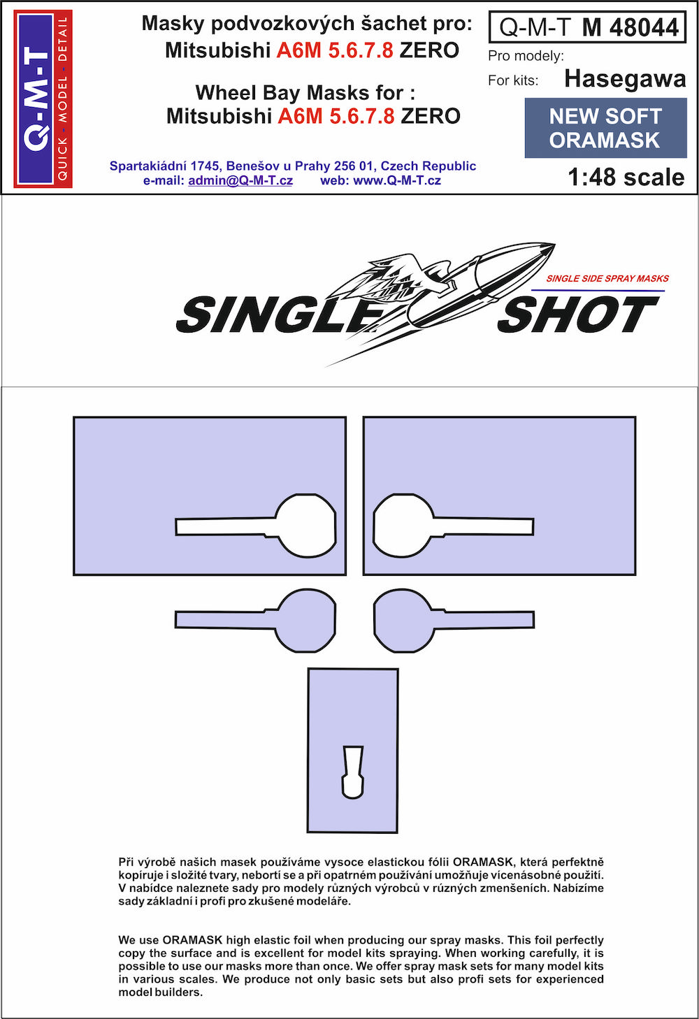 Q-M-T - 1/48 Mitsubishi A6M5/A6M6/A6M7/A6M8 Zero wheel bay paint masks (for Hasegawa kits) made from New Soft Oramask