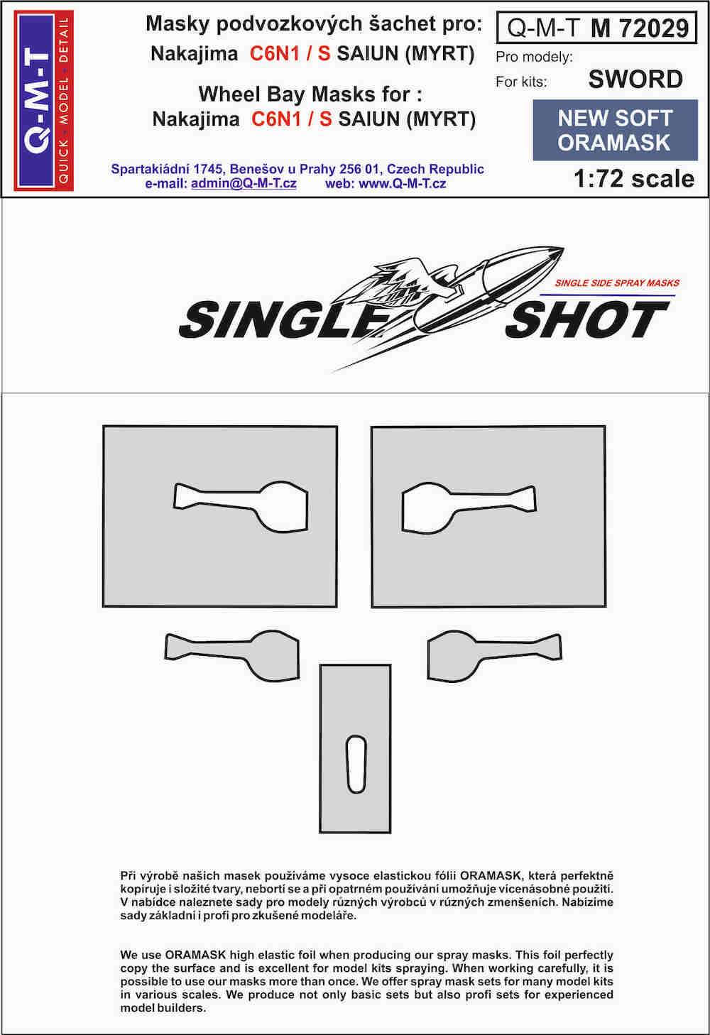 Q-M-T - 1/72 Nakajima C6N1 Myrt wheel bay paint masks (for wheel bay paint masks (for Sword kits) made from New Soft Oramask kits) made from New Soft Oramask