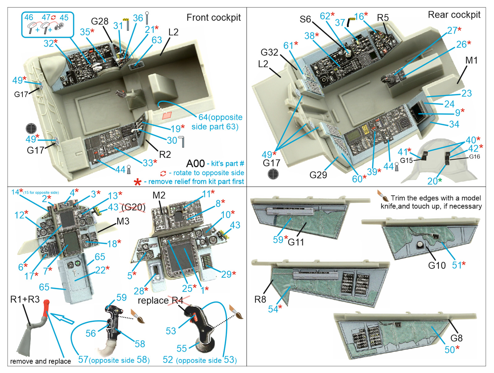Quinta Studio - 1/32 Grumman F-14B Tomcat 3D-Printed & coloured Interior on decal paper (for Trumpeter kits)