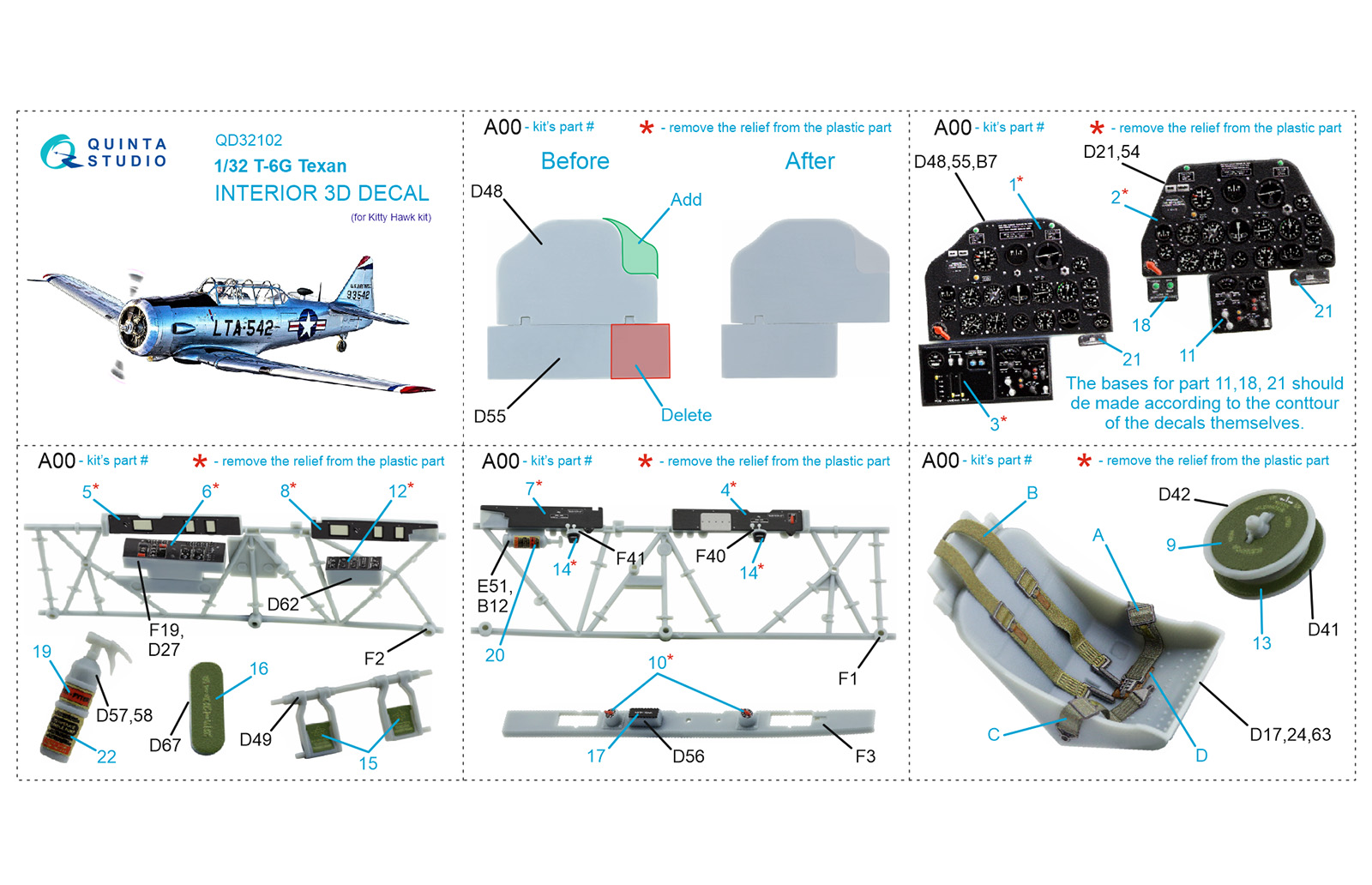 Quinta Studio - 1/32 North-American T-6 Texan 3D-Printed & coloured Interior on decal paper (for Kitty Hawk kits)