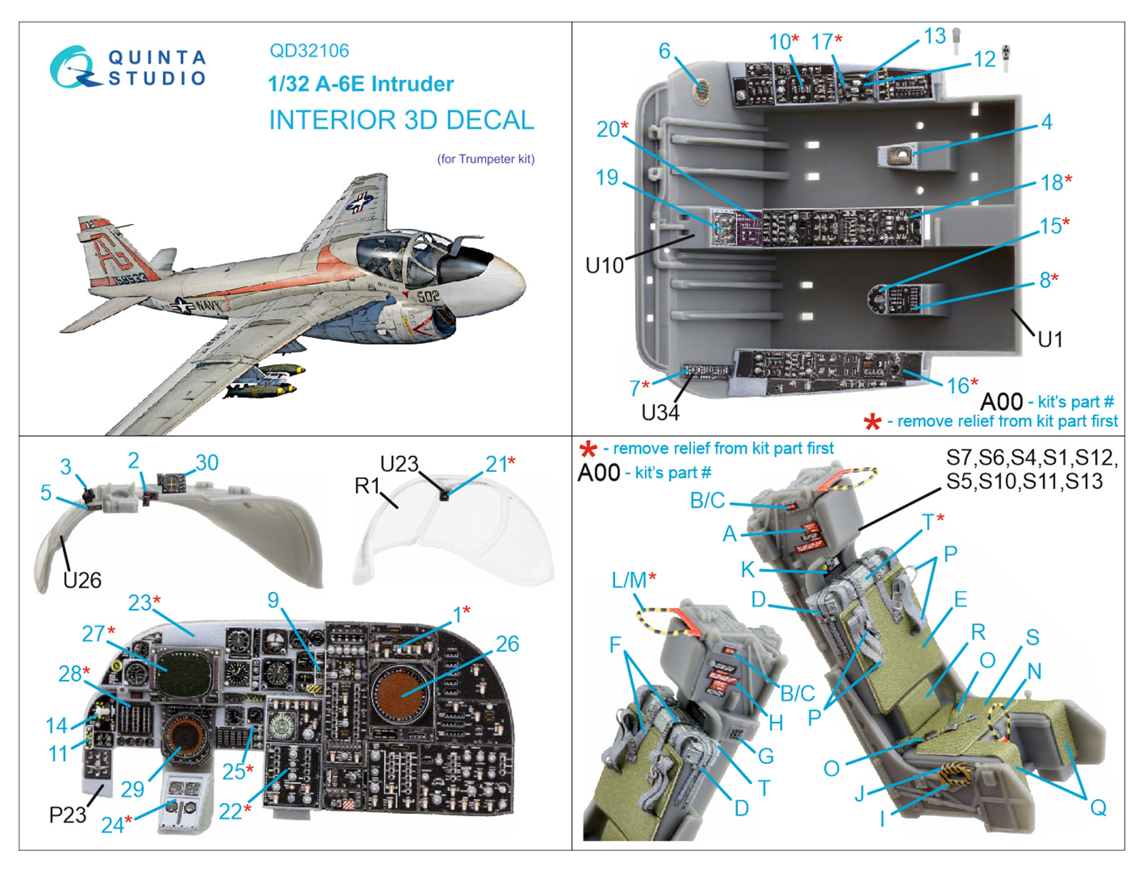 QUINTA STUDIO - 1/32 A-6E Intruder 3D-Printed & color Interior (TRUMP)