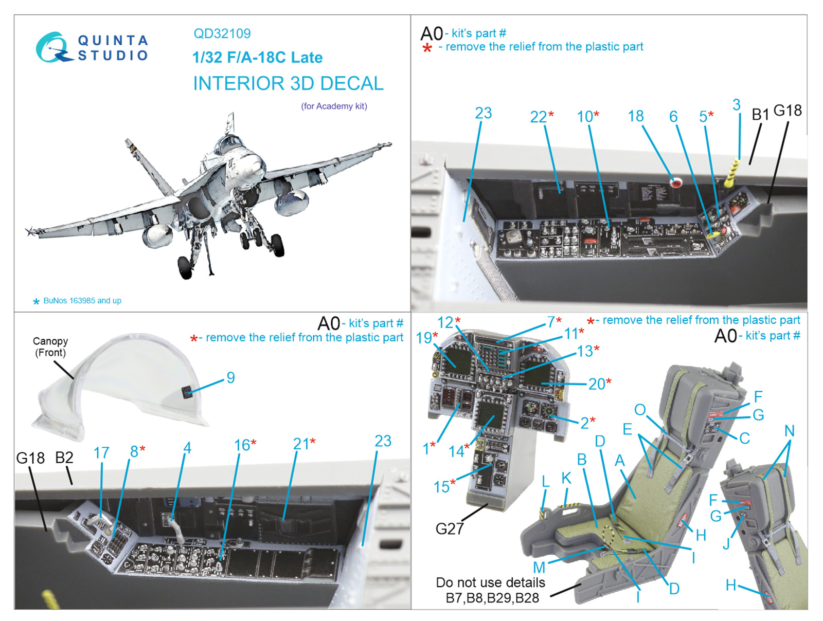 QUINTA STUDIO - 1/32 F/A-18C Late 3D-Printed & color Interior (ACAD)