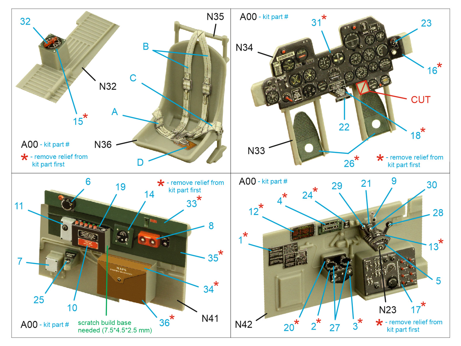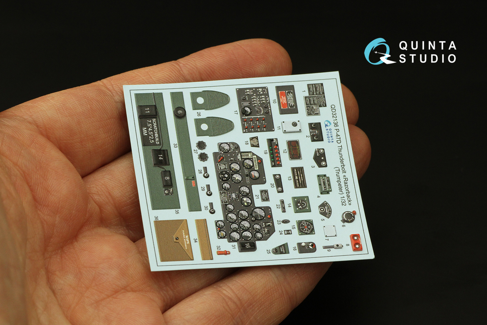 Quinta Studio - 1/32 Republic P-47D Thunderbolt Razorback 3D-Printed & coloured Interior on decal paper (for Trumpeter kits)